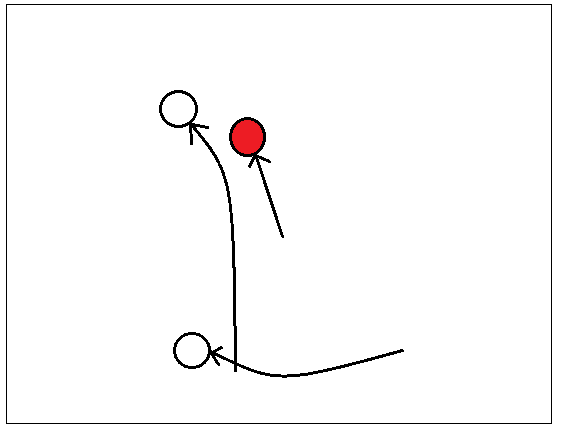As mentioned, this is where a faster, bigger, stronger kid can make his own space to catch a ball by simply running past, leaping over, or out-muscling a weaker defender. This is the dominant passing concept at the youth level. It is a perfectly valid tactic that every coach should exploit if available to him as it is the simplest to implement. Jump balls, go routes, and 50/50 balls are examples of mismatch. If no other route concept is employed, then the route concept is based upon Mismatch by default.