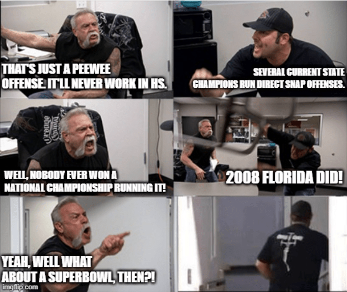 Posted on May 31, 2024, in Memes and tagged air raid, football, offense, Sidesaddle, single wing. Bookmark the permalink. Leave a comment.